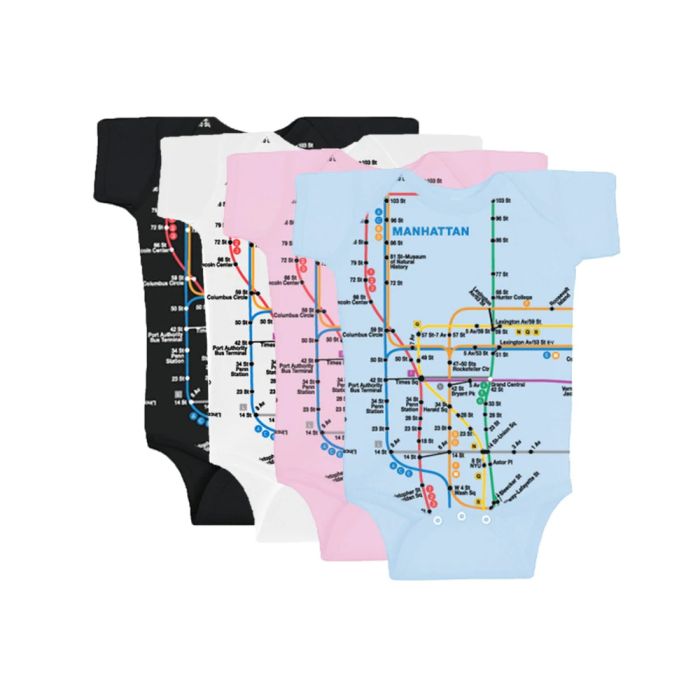 If you're old enough to ride the subway, you're old enough to brag about it! This stylish romper features the Manhattan subway map.