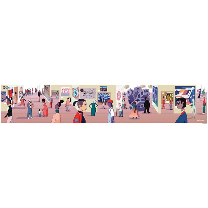 The artist brings the experience of New York City’s greatest art museums to you in her illustration “The Gallery”. Embedded with hidden subway references, she depicts works by famous artists.