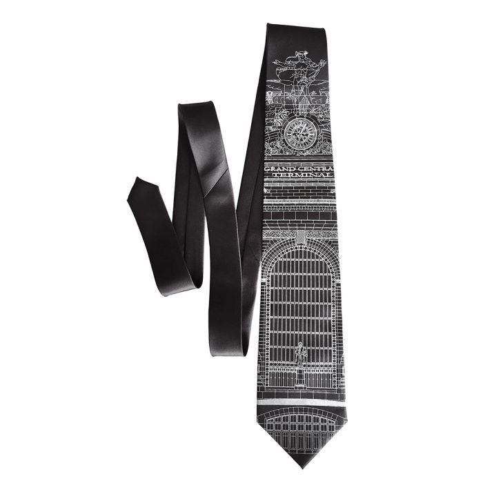 Beautiful charcoal black tie depicting a drawing of iconic Grand Central Terminal in New York City. A major hub for millions of people from around the world. Show off your New York style wherever you go! Perfect for newcomers, ex-pats, fans from afar and long-time New York City dwellers alike.