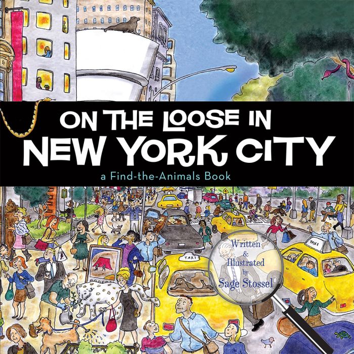 Prize-winning cartoonist Sage Stossel has created her fourth Find-the Animals book with On the Loose in New York City. Children will have hours of entertainment finding the Central Park Zoo animals out and about in Manhattan?whether a monkey on Fifth Avenue, a sea lion at the Natural History Museum, or a snow leopard in Times Square! Over 100 animals are hiding cleverly in favorite New York City locations in this colorfully-illustrated rhyming picture book.