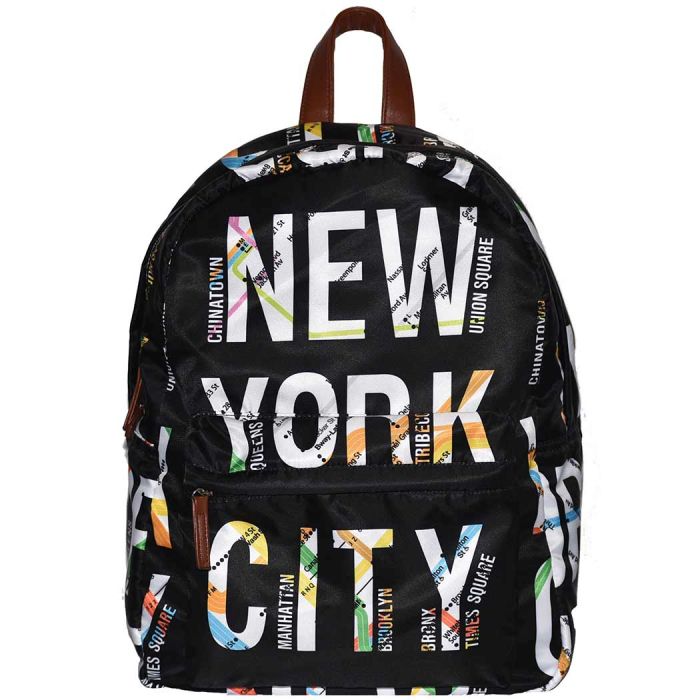 Declare your love for the Big Apple with this NYC backpack that uses Vignelli's iconic subway map as the background. Neighborhoods are written all over the backpack, and the straps feature a patch in the shape of the Y-cut token.