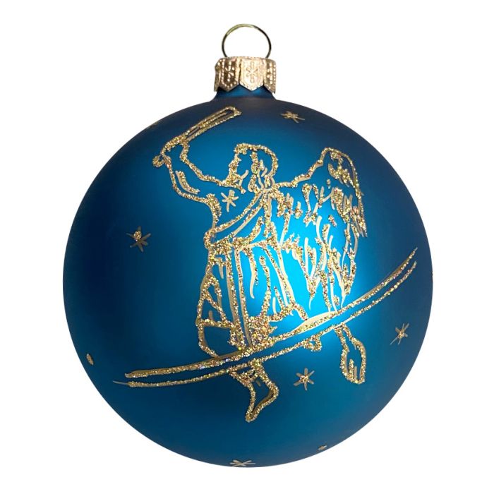 This Orion glass ornament is an artistic rendering of the Grand Central Terminal famous astrological ceiling mural.  Originally painted by the Hewlett-Basing Studio, depicts October to March constellations of the zodiac on a cerulean blue sky. Glass ornament hand crafted, glass blown in Poland, where the  art of making glass tree ornaments has roots that are centuries old.