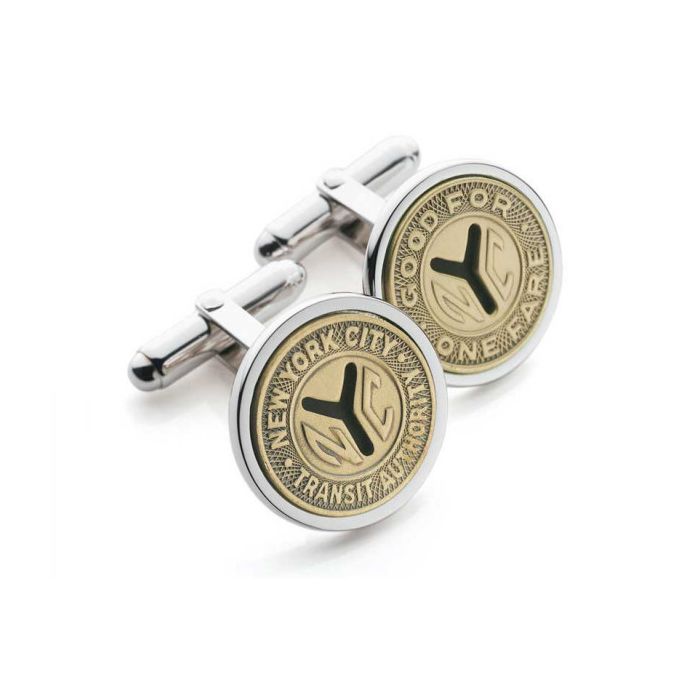 These cufflinks are crafted from authentic dime-sized Y-cut New York transit tokens circulated from 1953-1970. They're sure to elevate any outfit with a vintage flair.