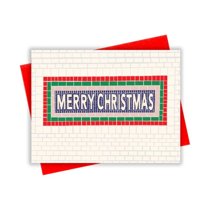 Merry Chrsitmas holiday card with New York City subway tile design.