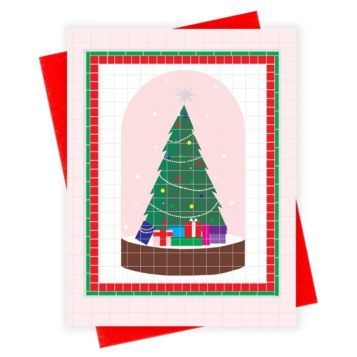 Chrsitmas Tree holiday card with New York City subway tile design.