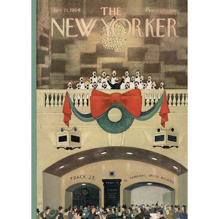 Single card featuring choir at Grand Central cover of New Yorker magazine. Beautifully illustrated. Perfect for holiday card mailing.