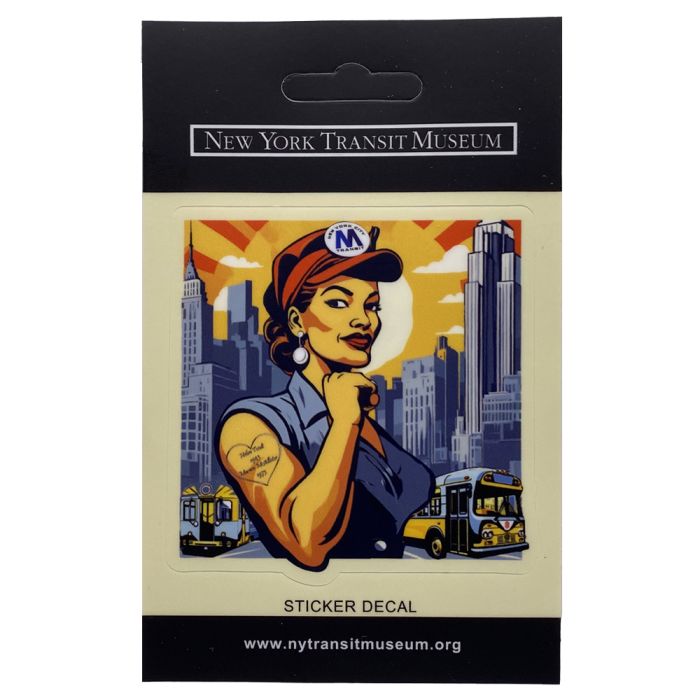Celebrate Women's History in Transit with this beautifully illustrated sticker, honoring Helen Tvedt, one of thirteen women who volunteered to drive New York City buses during WWII; Marion McAllister, the first female train operator in the NYC Subway; and all the women who keep New York moving forward.