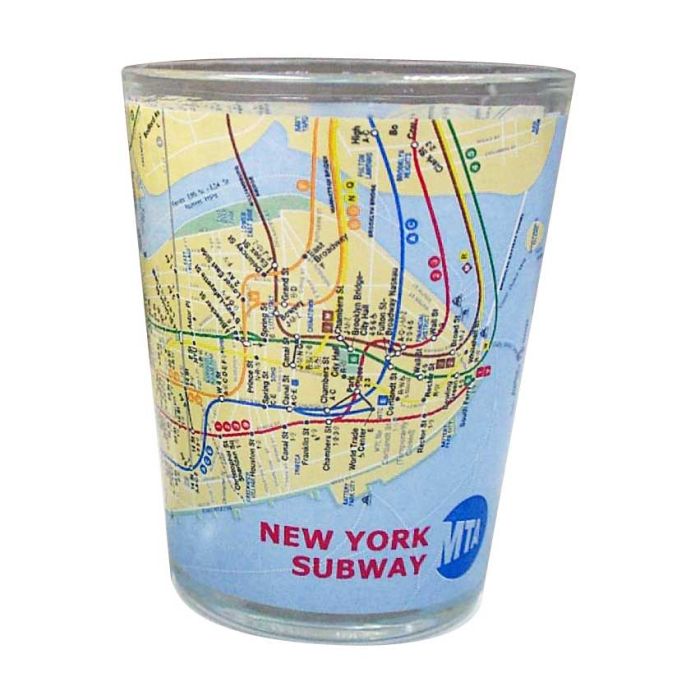Great for the party or for gifting, New York City Subway map shot glass, 2 1/2 inches tall.