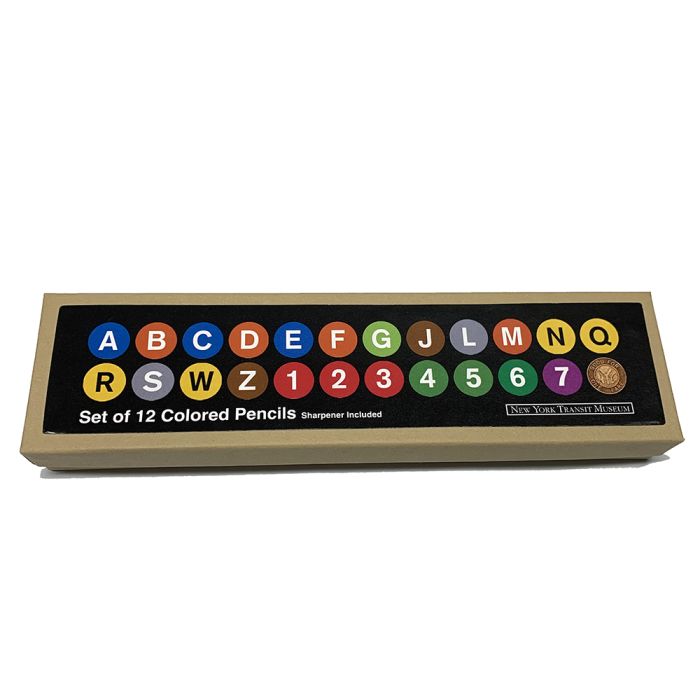 Draw, write, or color with this New York Transit Museum exclusive pencil set. The set includes 12 beautiful colors.