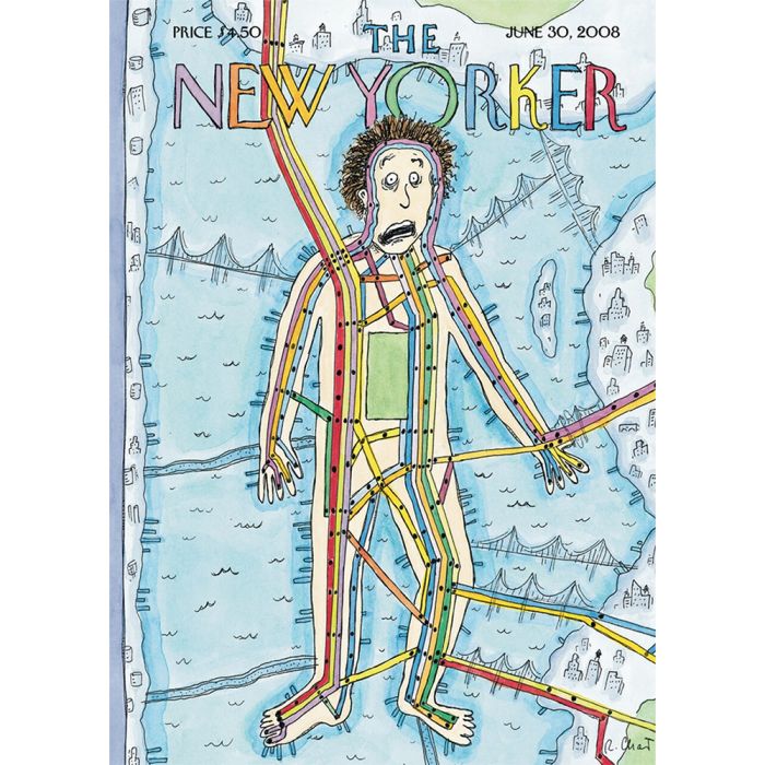 This Mr. Subway Map New Yorker cover notecard will bring a smile to your face. Anyone who's been to New York and ridden the subway will instantly recognize the New York subway map and can relate to this very funny image.