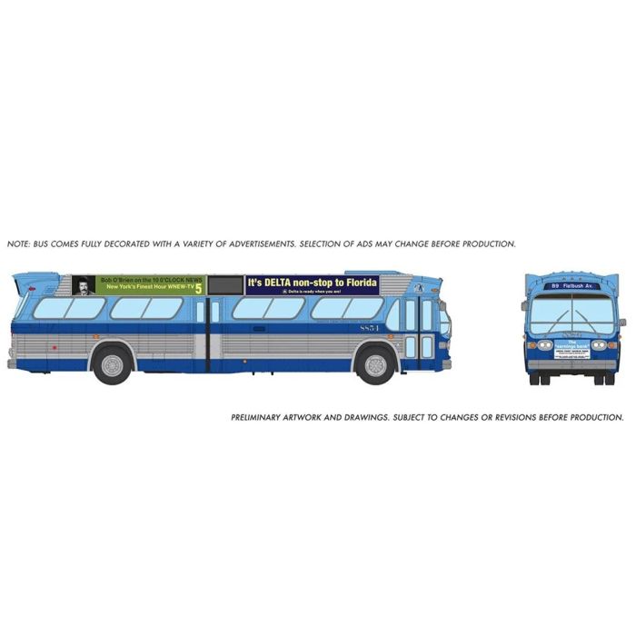 Description / HO 1/87 New Look Bus (Deluxe): New York MTA - Blue: #8854 with ads