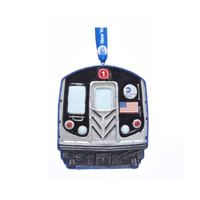 This MTA New York City Transit subway ornament is a fun and festive addition to any holiday décor or Christmas tree. This two sided ornament features a partial subway line list on one side and the other is the front of a subway car accented with glitter and the American flag. Great gift for a first Christmas celebration.