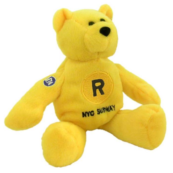 Bring the R train home with you in the form of an adorable teddy bear! Complete with the vibrant yellow R line bullet and the MTA logo, this teddy makes the perfect cuddly companion for train enthusiasts of all ages.