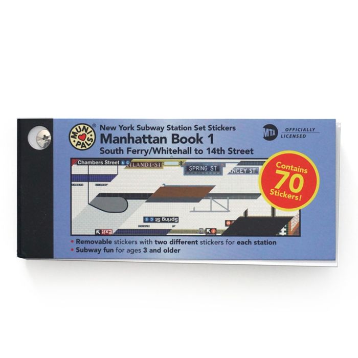 Two vinyl cling-style stickers for each station from South Ferry/Whitehall to 14th Street. For play with the Manhattan Stations and Track Set and the NYC Stations and Stickers Set.