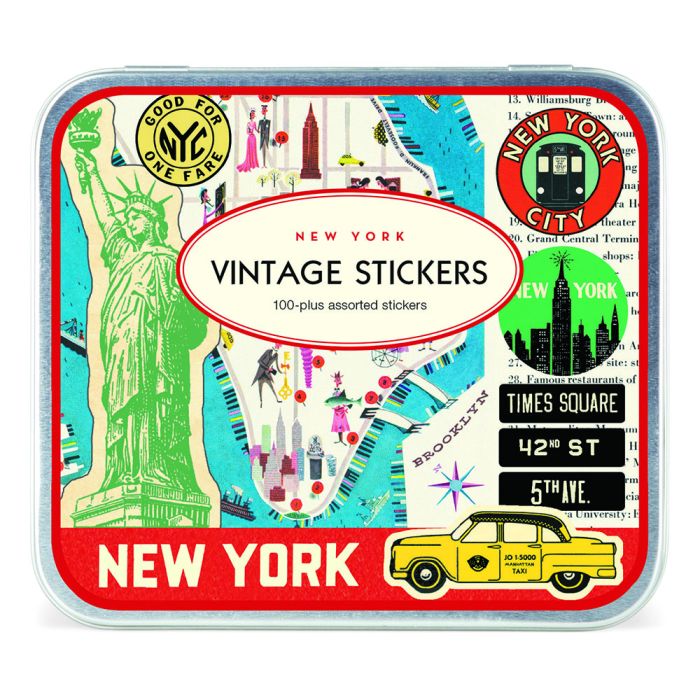 This delightful set includes 24 sheets of 100-plus assorted stickers, featuring vintage new York images. Perfect for decorating cards and gifts.