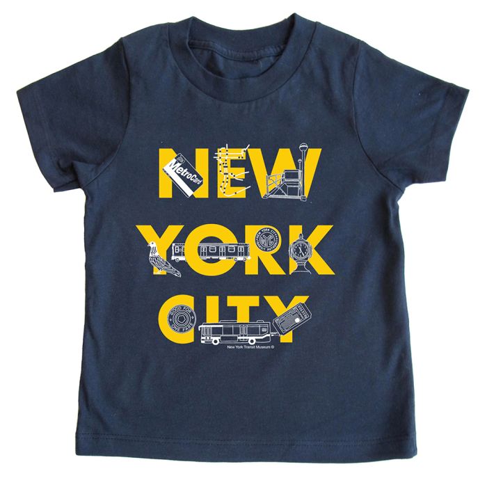 Brag about the city you love with this New York City Transit tee. Fun design with the iconic MetroCard, tokens, subway ticket, train, bus and more!