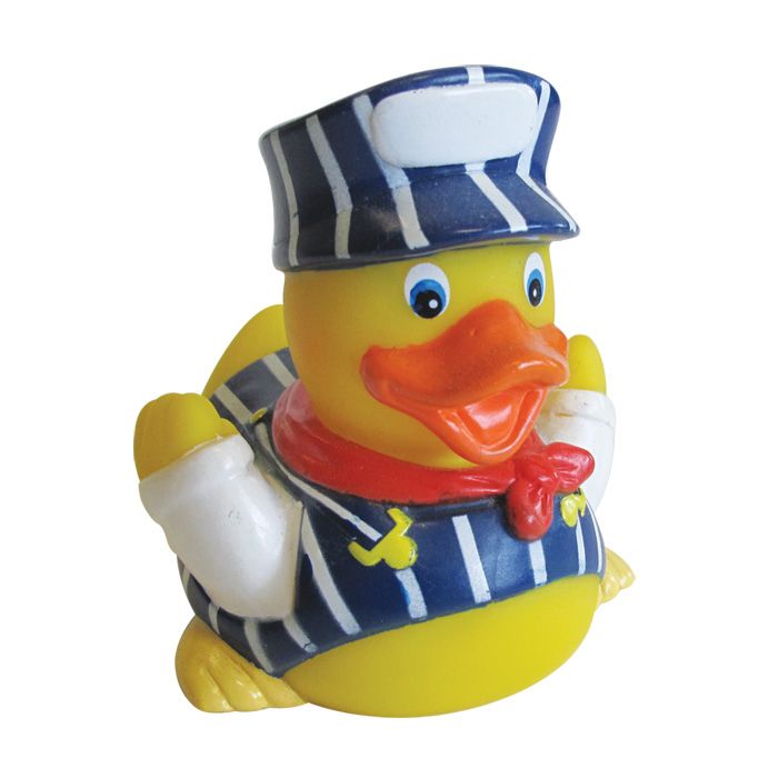 Train engineer rubby ducky is fun, fun, fun-in-the-tub! 3 1/4" x 3 1/4" Perfect for birthday party favours, goody bags and stocking stuffers.