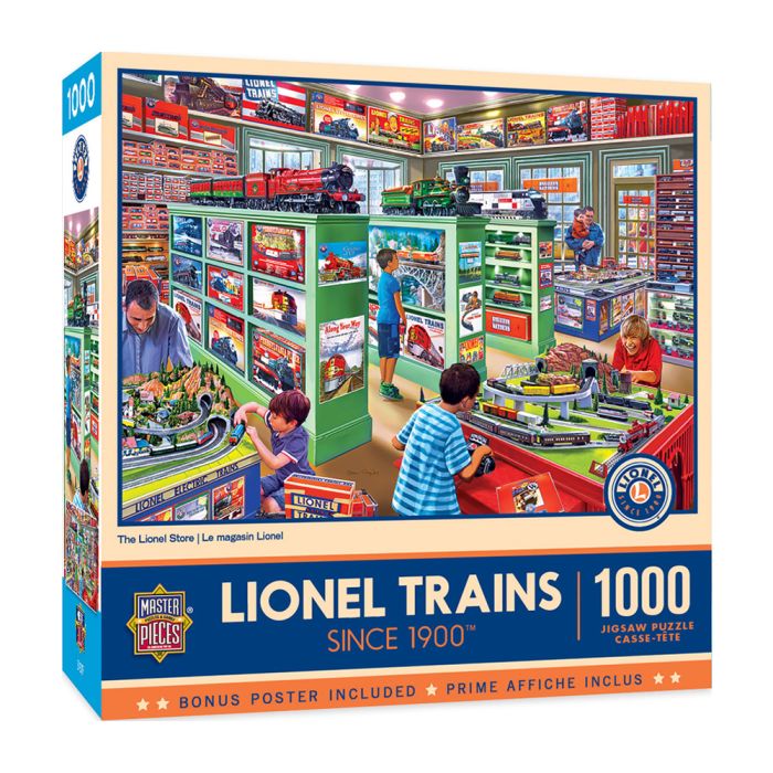 These MasterPieces 19.25" x 26.75" 1000pc of Lionel features the essence of the classic toys from the past. A weekend trip down to the Lionel train store brings out the kid in everyone. To reduce their impact on our environment, the chipboard used in these puzzles is made of recycled material.