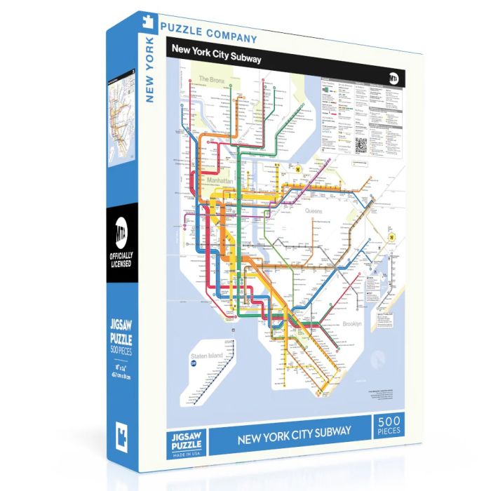 Some people say the New York City Subway can be puzzling at times. Find out for yourself with this 500 piece puzzle of the MTA New York Subway Diagram Map. Great for game nights!