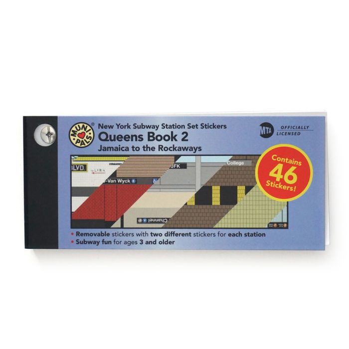 Two vinyl cling-style stickers for each Queens station from Roosevelt Island to Flushing and Forest Hills. For play with the Manhattan Stations and Track Set, and the NYC Stations and Stickers Set.