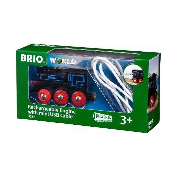 Never run out of steam with the 33599 Rechargable Engine. This battery-power toy train features simple-to-use forward and backwards motion, as well as a headlamp to light up the way. To charge the engine, simply plug it into any normal USB socket using the mini USB cable. When the red light stops blinking, it’s fully charged and ready to go again.