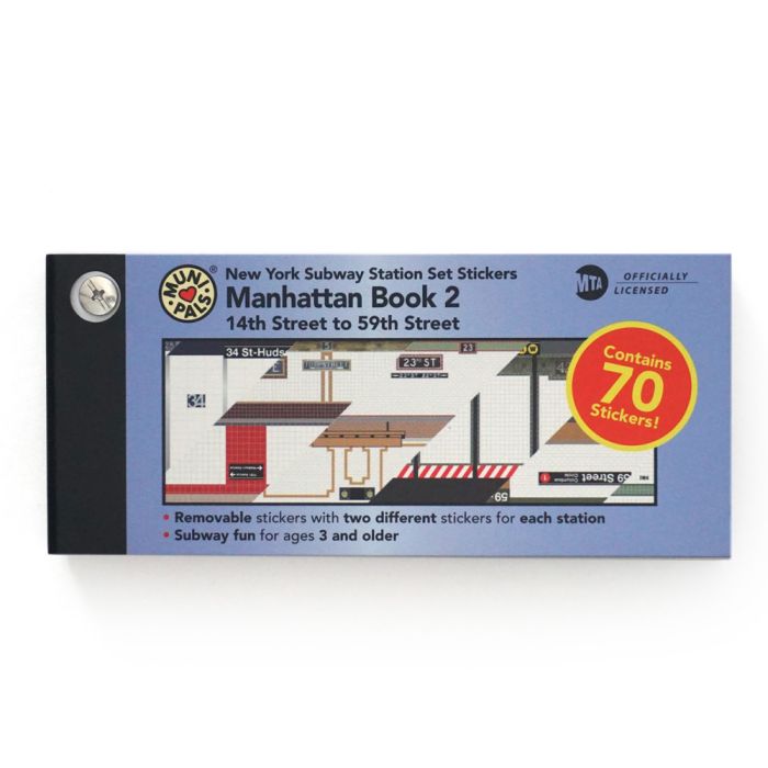 Two vinyl cling-style stickers for each station from 14th Street to 59th Street. For play with the Manhattan Stations and Track Set, and the NYC Stations and Stickers Set.
