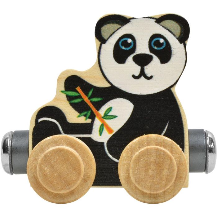 Bring a smile to everyone with this animal car. Precious Panda is crafted from local sustainably harvested native maple hardwood and is compatible with most wooden railway systems. Precious is black and white and is holding a small twig of bamboo. Measuring approximately 2.7" long by 2.2" high. Strong magnets allow you to attach to your name or make a special train. Non-toxic finish.