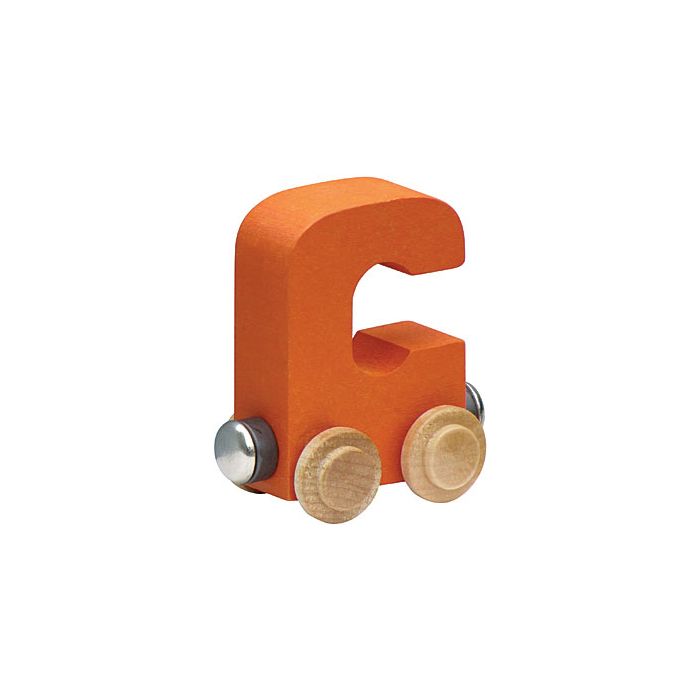 This vibrant letter C train is crafted from locally sourced and sustainably harvested hard maple. Magnets allow you to attach cars to form names and words, making them perfect for a child's room. The letter car measures about 2-1/2" tall and about 2-5/8" long. Compatible with our wooden train sets and wooden train cars. Non-toxic finish. Ages 3 and up. Finished with color dye stain and urethane.