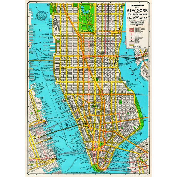 New York City Transit Map with house guide wrapping paper. Beautiful enough to hang and decorate the walls or wrap a memorable gift.